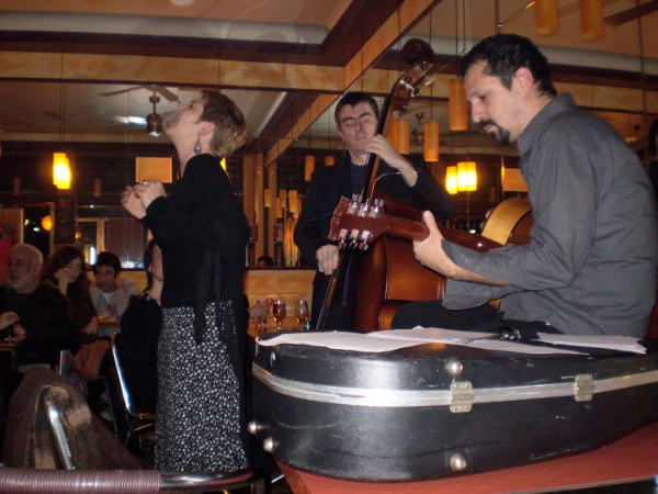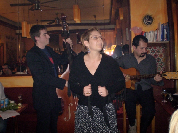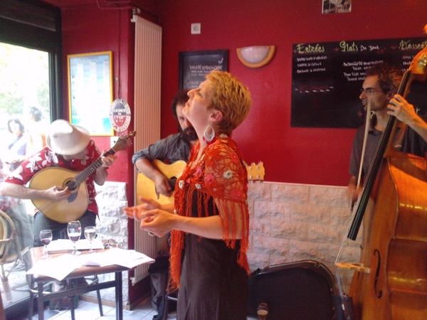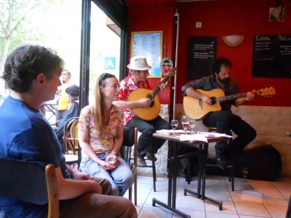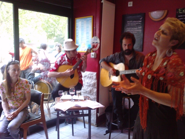 avec deux guitaristes portugais, Miranda et Flaviano le dimanche 8 janvier 2012, au restaurant portugais Coimbra do Choupal, 92 allée du Colonel Fabien, à Pavillons-sous-Bois (93) (métro Eglise de Pantin puis prendre le bus 147 jusqu'à Eglise des Pavillons-sous-bois) à 15h00 8 rue Edouard Vaillant, à Montreuil (métro Croix de chavaux) à 20h00